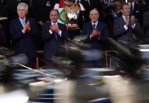 Σε ένδειξη σεβασμού προς τα θύματα, τις οικογένειές τους και τους σεισμοπαθείς, η τελετή δεν θύμιζε σε τίποτα τους εντυπωσιακούς εορτασμούς των παλαιότερων ετών και διήρκεσε μόλις 50 λεπτά.Ο πρόεδρος της ιταλικής Δημοκρατίας Τζόρτζιο Ναπολιτάνο έφτασε στην Πιάτσα Βενέτσια με το αυτοκίνητο εποχής «Φλαμίνια» και ένα μικρό, άσπρο καπέλο που τον προστάτευε από τον ήλιο, για να αποτίσει φόρο τιμής, στο μνημείο του άγνωστου στρατιώτη.